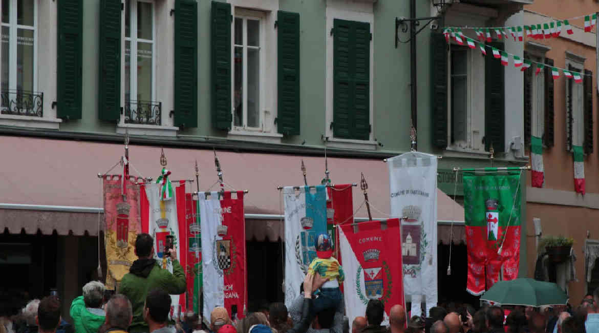 Eris Trentinaglia Sfilata Gonfaloni dei vari Comuni lungo Corso Ausugum– Borgo Valsugana